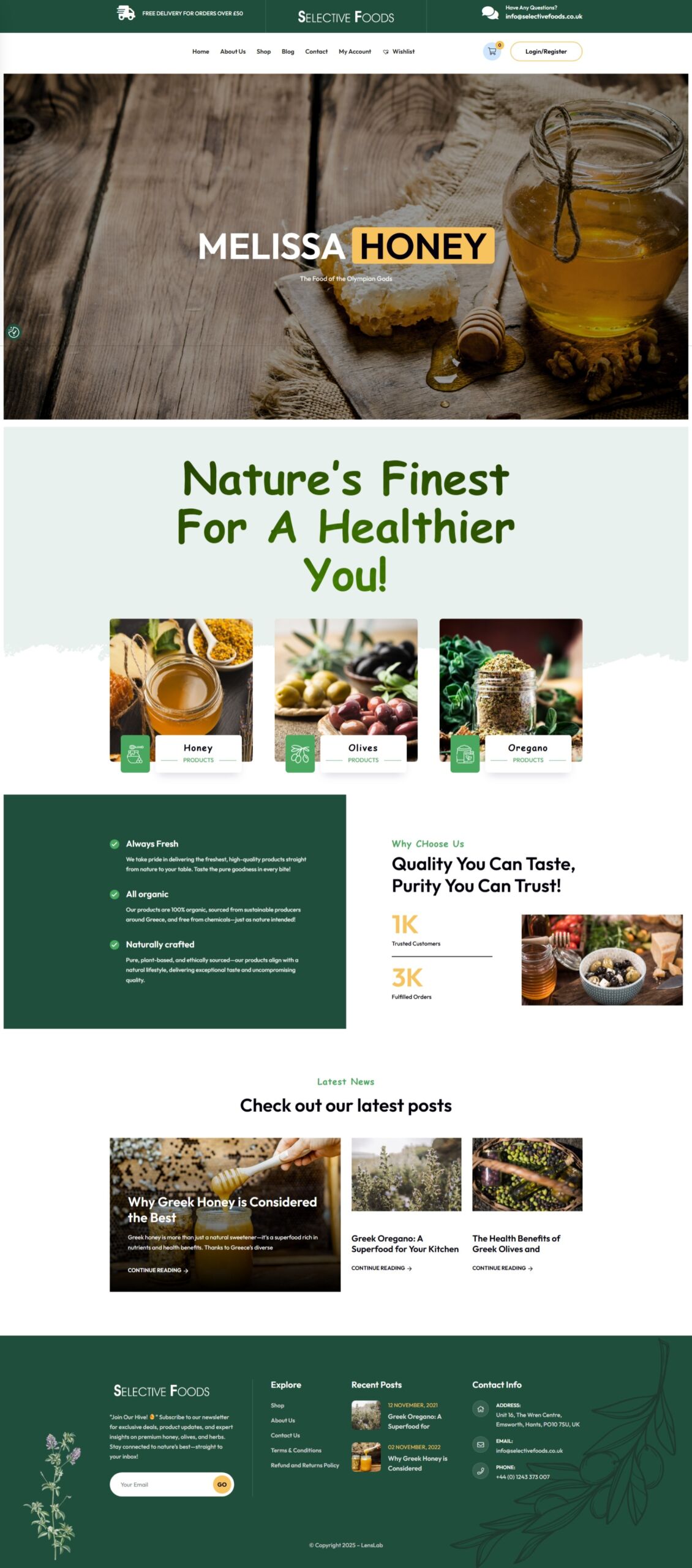 Η κατασκευή e-shop για τη Selective Foods πραγματοποιήθηκε από τη LensLab στη Θεσσαλονίκη, με στόχο τη δημιουργία ενός σύγχρονου και αποδοτικού ηλεκτρονικού καταστήματος για premium προϊόντα διατροφής. Το project εστιάστηκε στην ανάδειξη της ποιότητας, της αυθεντικότητας και του χαρακτήρα των προϊόντων μέσα από μια καθαρή και κομψή ψηφιακή εμπειρία, σχεδιασμένη για διεθνές κοινό.